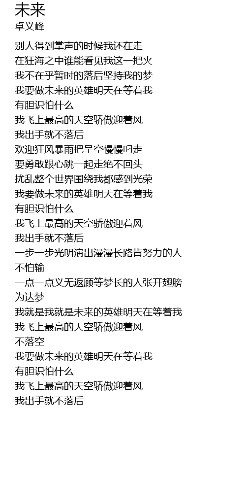 | [03:20.42] | 我要做未来的英雄明天在等着我 |