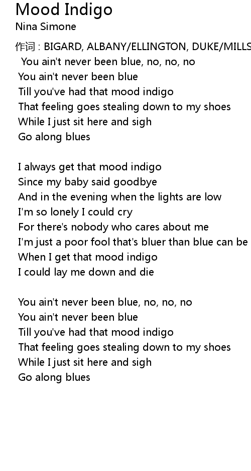 | I always get that mood indigo | |