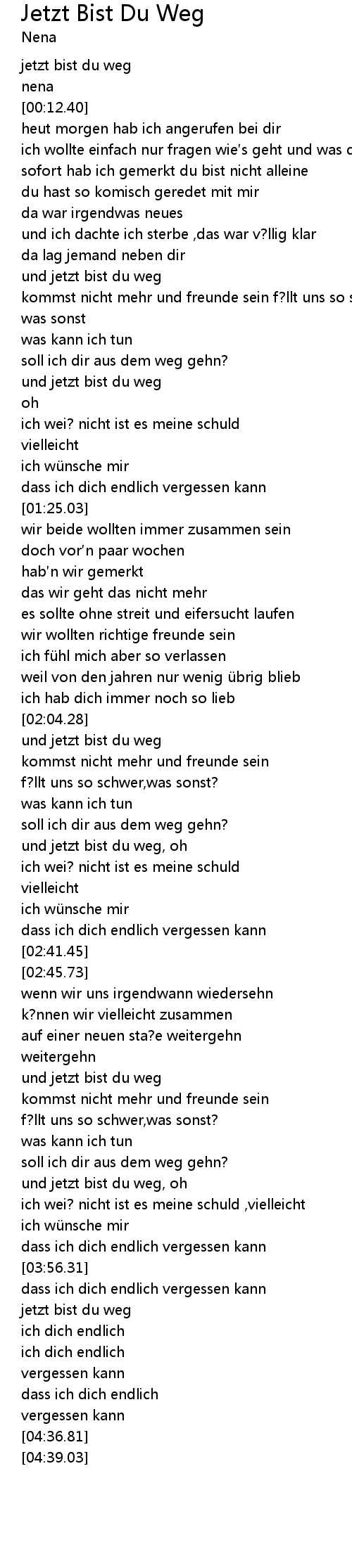 | [03:20.50] | und jetzt bist du weg |