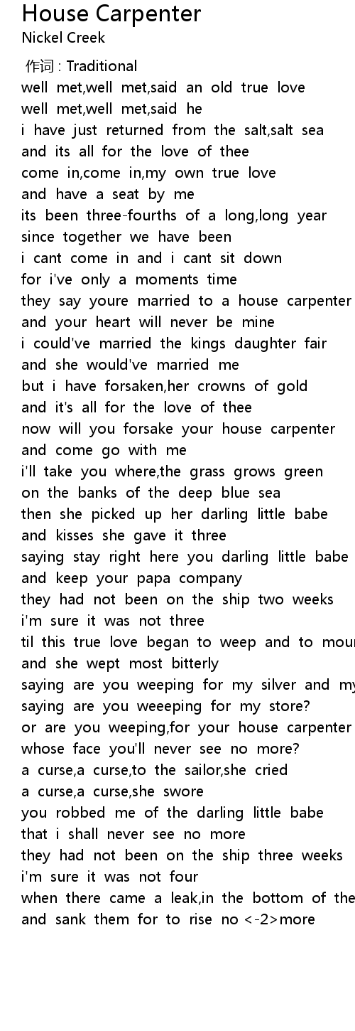 | [04:29.68] | or are you weeping, for your house carpenter |