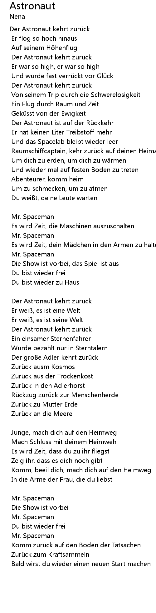 | Von seinem Trip durch die Schwerelosigkeit | |