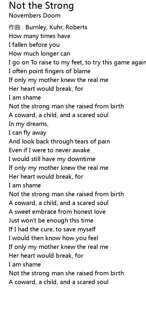 | Song | Not the Strong |