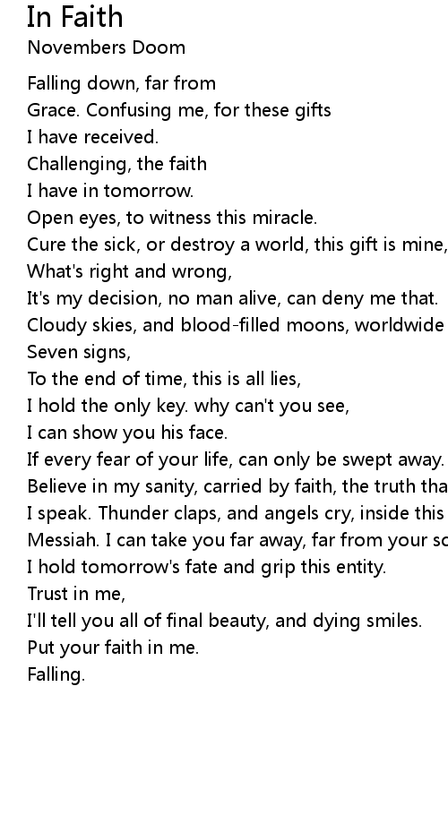 Believe in my sanity, carried by faith, the truth that binds, the words