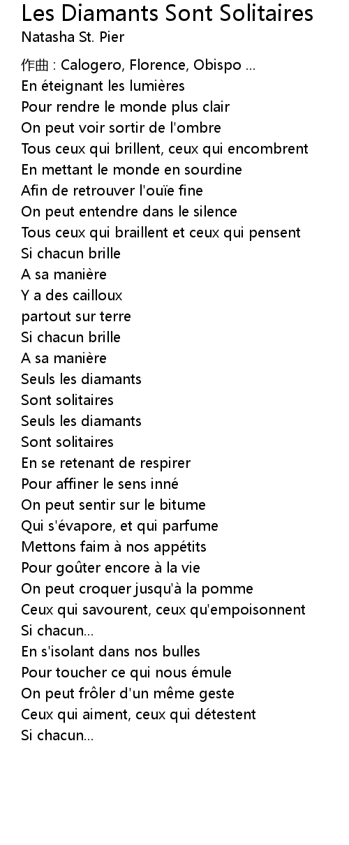| Song | Les Diamants Sont Solitaires |