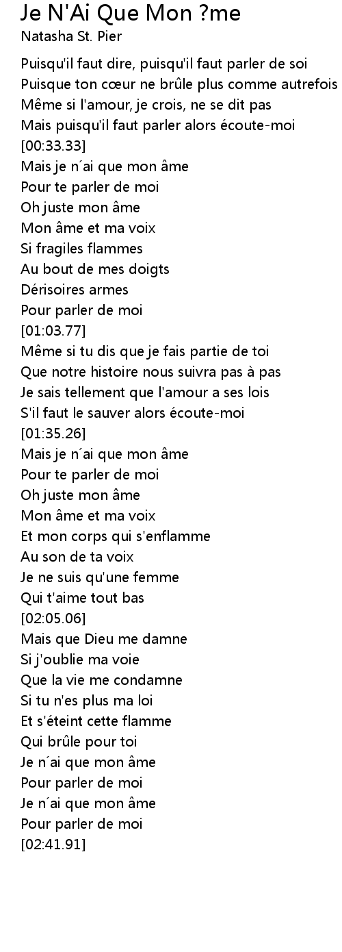 | [00:03.96] | Puisqu'il faut dire, puisqu'il faut parler de soi |