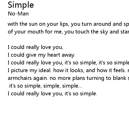 I picture my ideal. how it looks, and how it feels. no more dreams turning to armchairs again. no more plans turning to blank stares, as long as you are there. [chorus] it's so simple, simple, simple... |