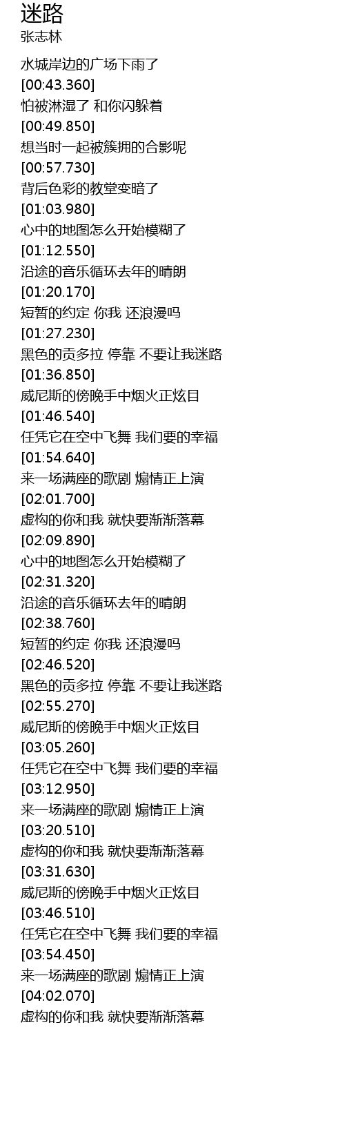 | [02:47.450] | 黑色的贡多拉 停靠 不要让我迷路 |