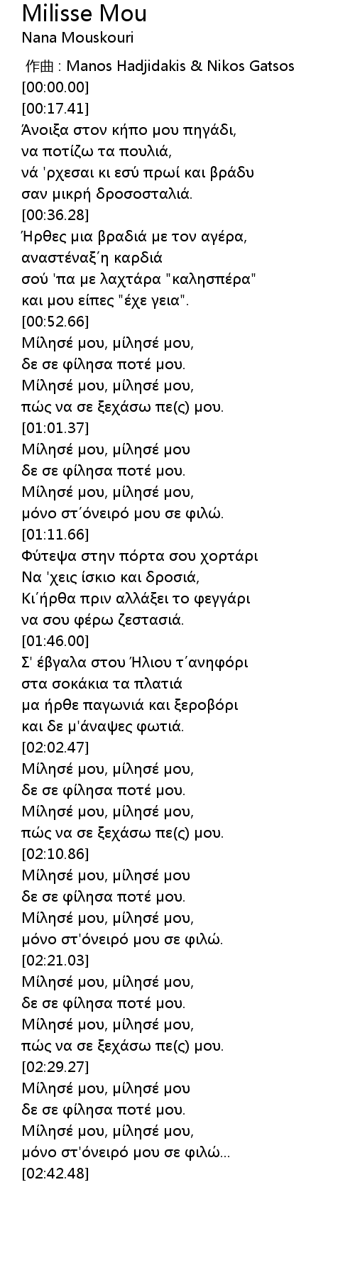 作曲 : Manos Hadjidakis & Nikos Gatsos |
