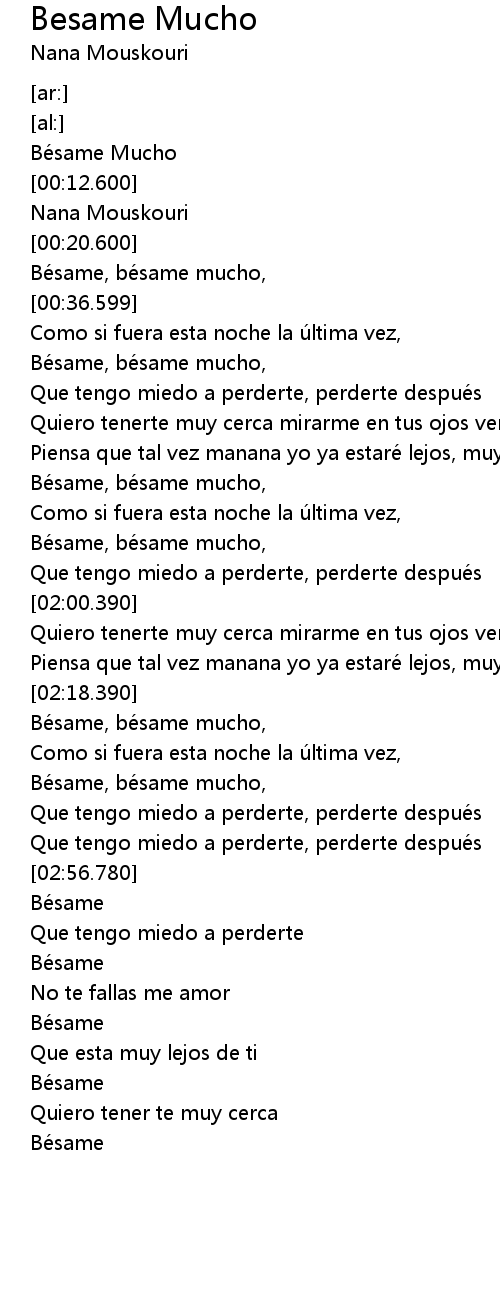 | [02:35.290] | Bésame, bésame mucho, |