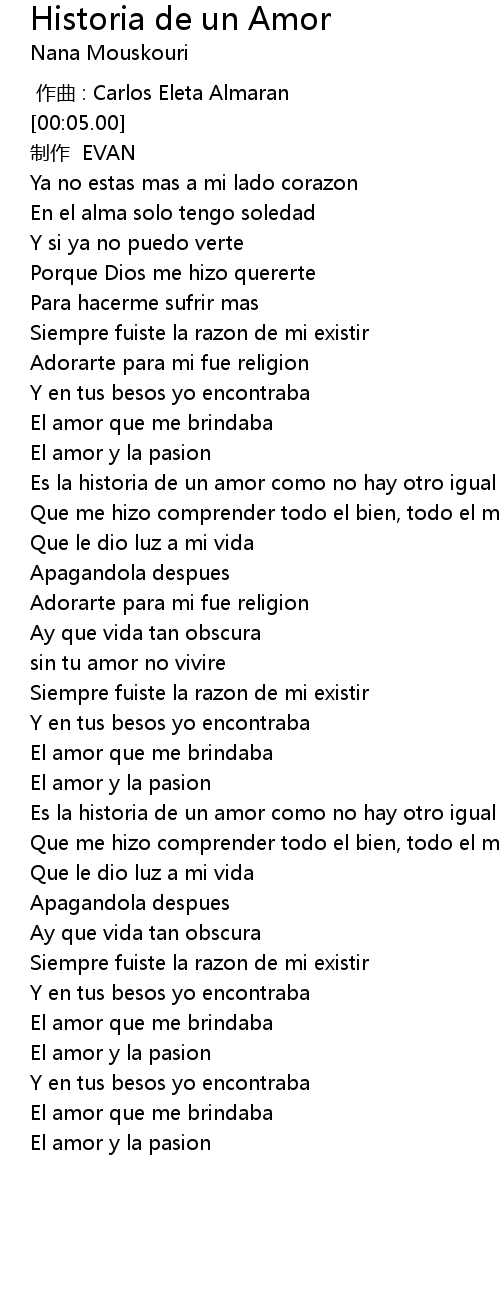 | [02:19.00] | Es la historia de un amor como no hay otro igual |