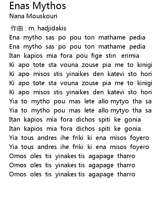 | [00:40.88] | Ena mytho sas po pou ton mathame pedia |