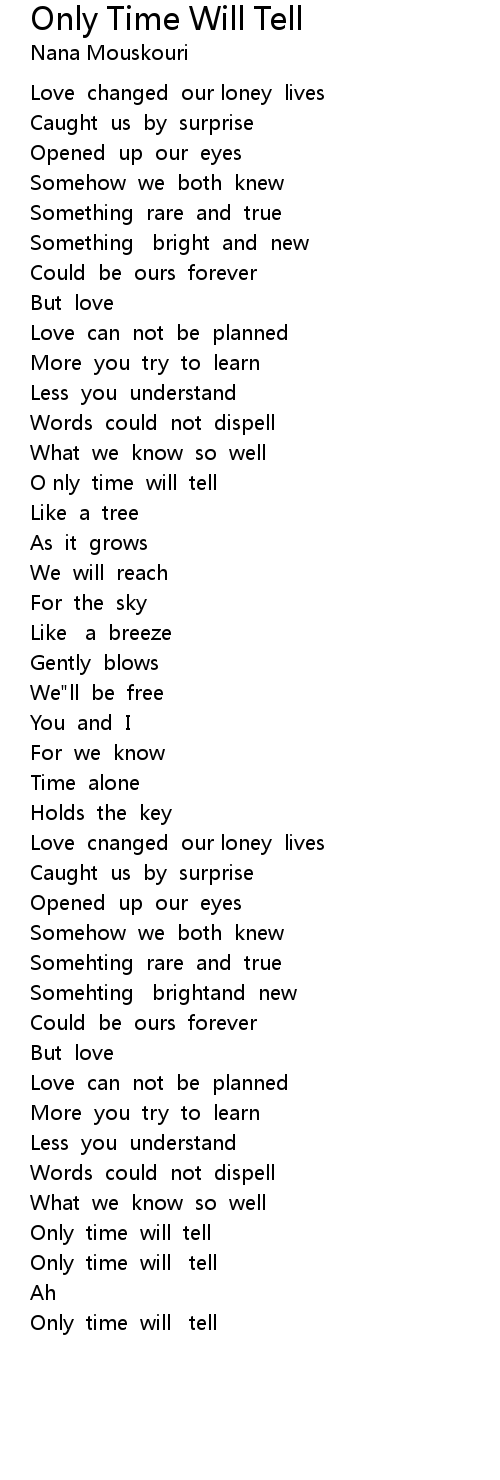 | [01:16.44] | O nly time will tell |
