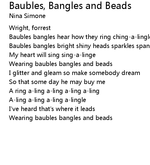 | Baubles bangles hear how they ring ching-a-lingle | |
