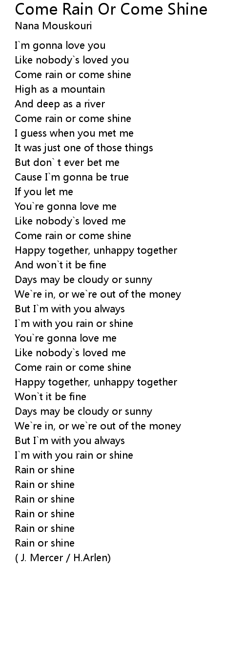 Come rain or come shine |