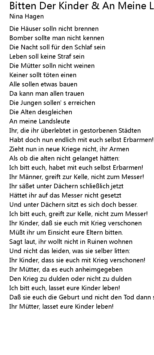 | Song | Bitten Der Kinder & An Meine Landsleute |