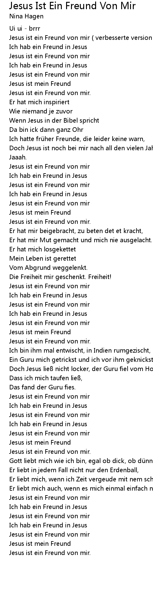| Jesus ist ein Freund von mir verbesserte version von Nina Hagen | |
