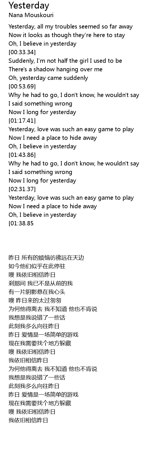 [00:13.14] Yesterday, all my troubles seemed so far away