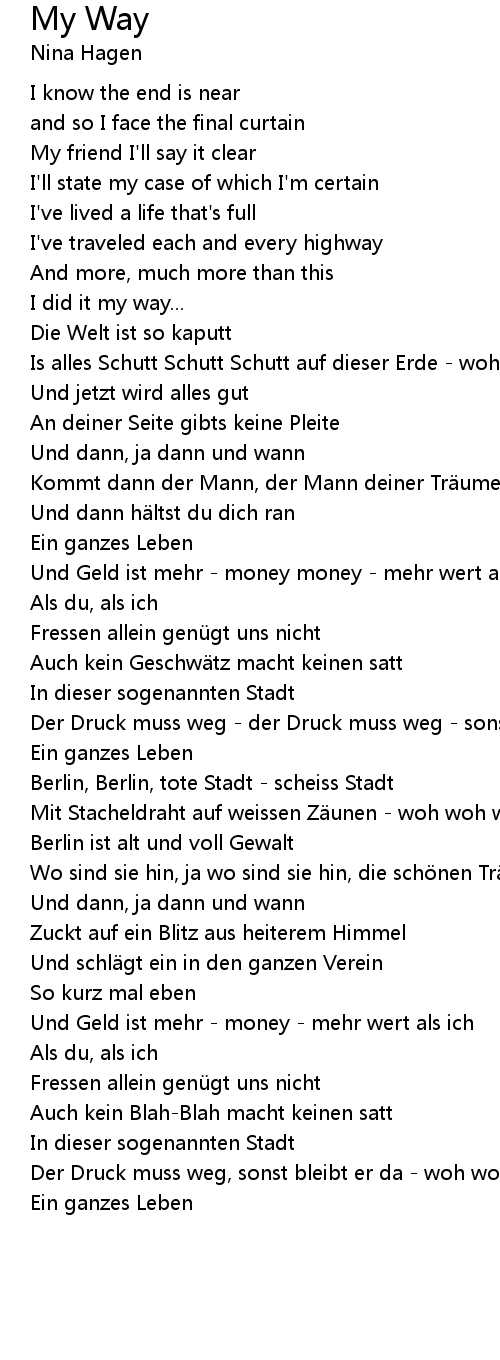 | Und Geld ist mehr money money mehr wert als ich | |