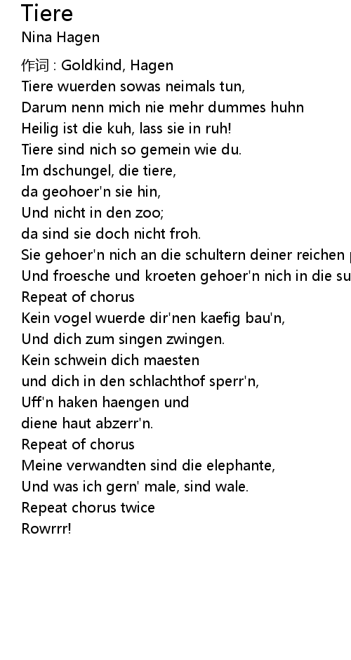 | Tiere sind nich so gemein wie du. | |