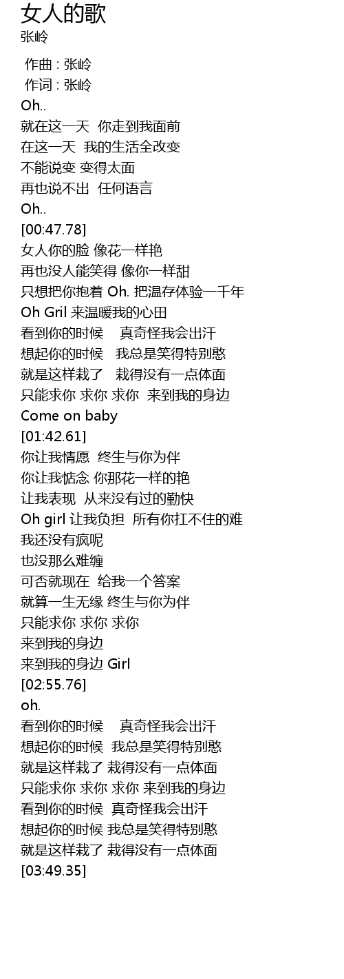 | [00:00.00] | zuò qǔ : zhāng lǐng |