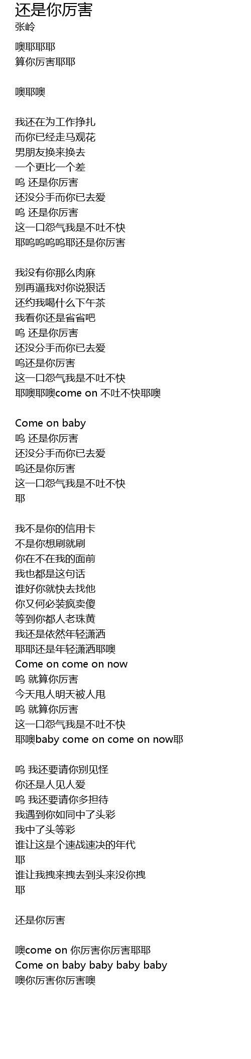 | ō come on nǐ lì hài nǐ lì hài yē yē | |