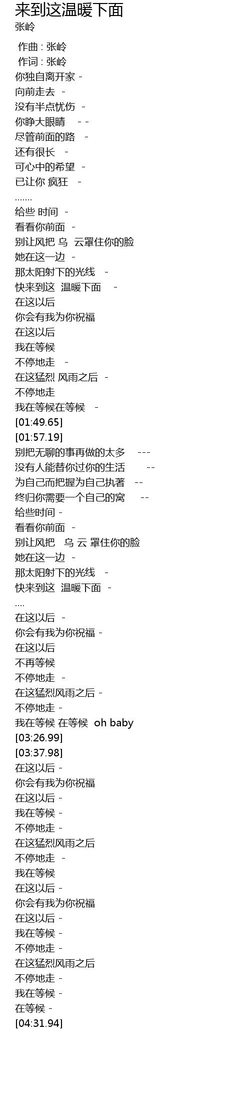 | [02:52.10] | 快来到这 温暖下面 - |