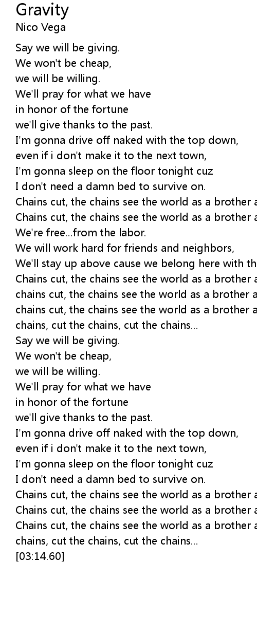 | [01:43.54] | Chains cut, the chains see the world as a brother and a sister now |