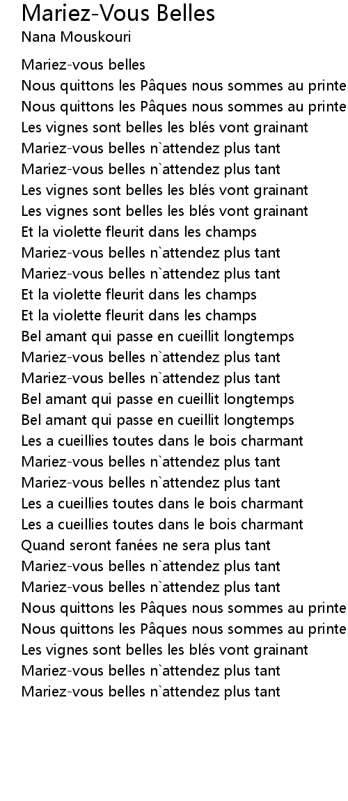| Song | Mariez-Vous Belles |