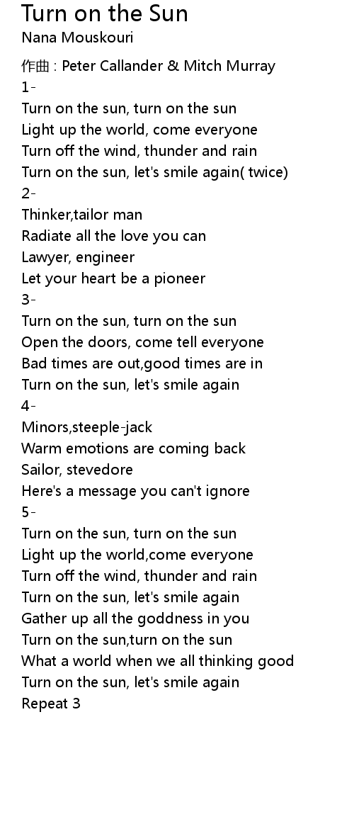 | zuò qǔ : Peter Callander Mitch Murray | |