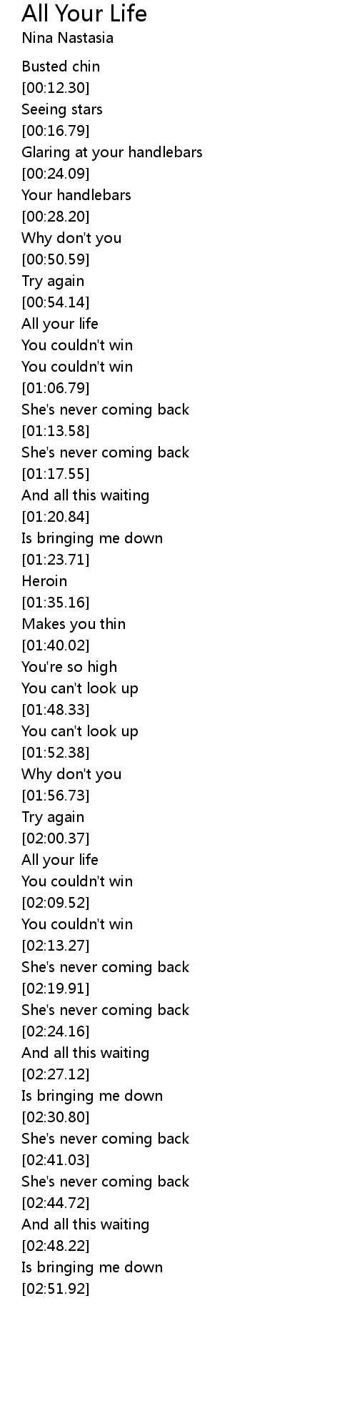 | [02:41.69] | She's never coming back |