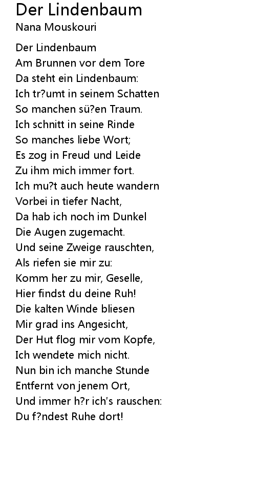 | Song | Der Lindenbaum |