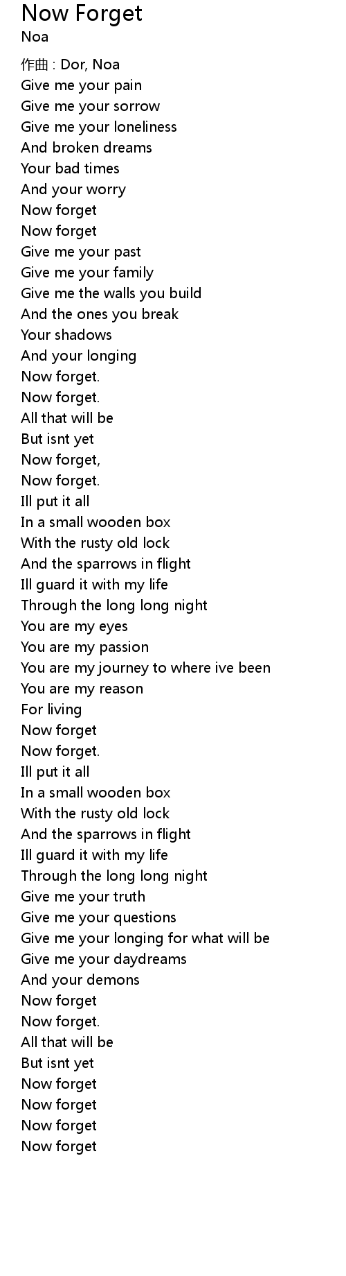 | Now forget, | |