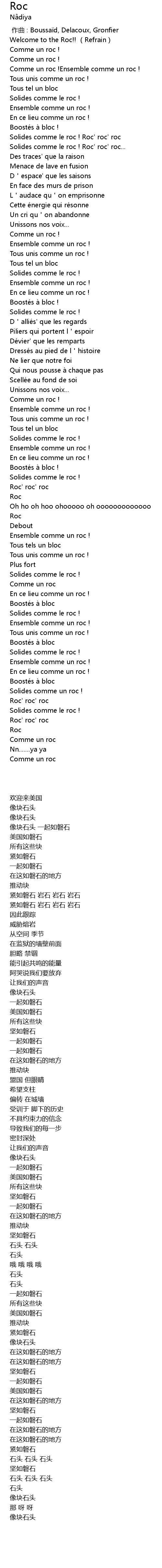 | [00:36.00] | Solides comme le roc ! Roc' roc' roc... |