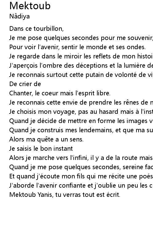 | Mektoub Yanis, tu verras tout est e crit. |