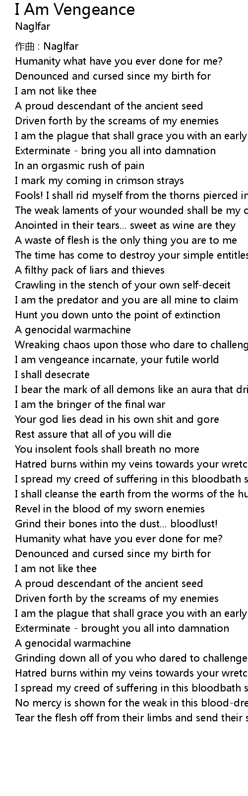 | I am vengeance incarnate, your futile world | |