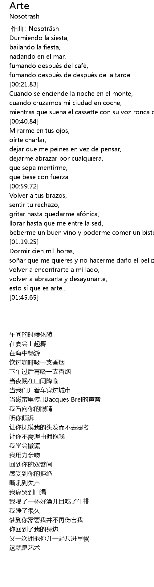 | [00:45.74] | dejar que me peines en vez de pensar, |