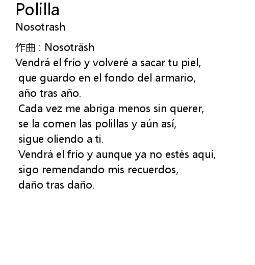 | Vendra el fri o y volvere a sacar tu piel, | |
