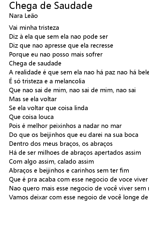 | Song | Chega de Saudade |