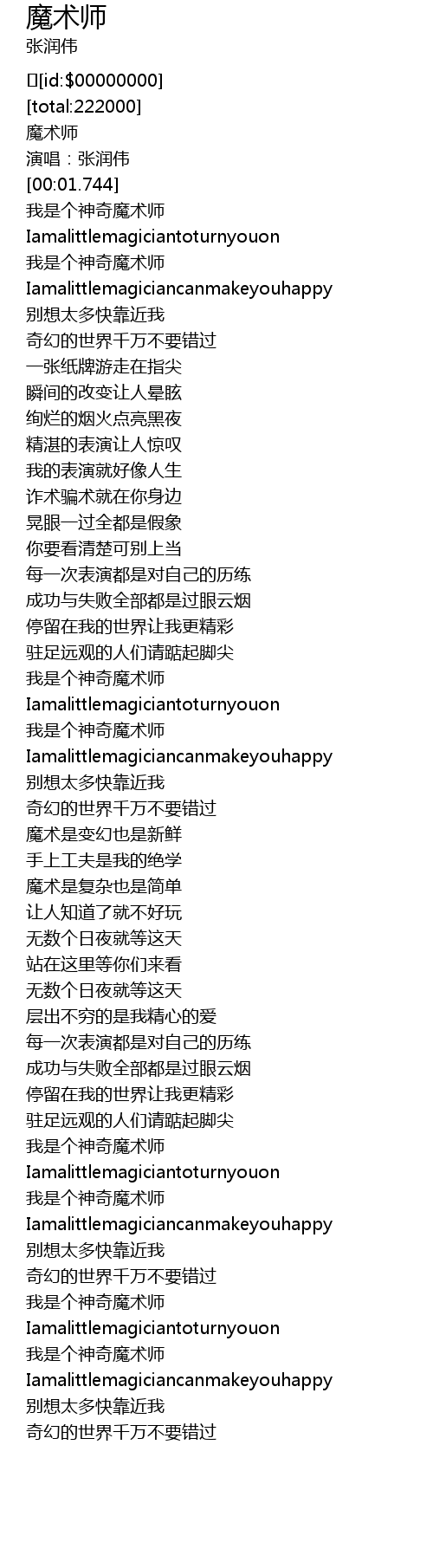 | [01:34.675] | Iamalittlemagiciancanmakeyouhappy |