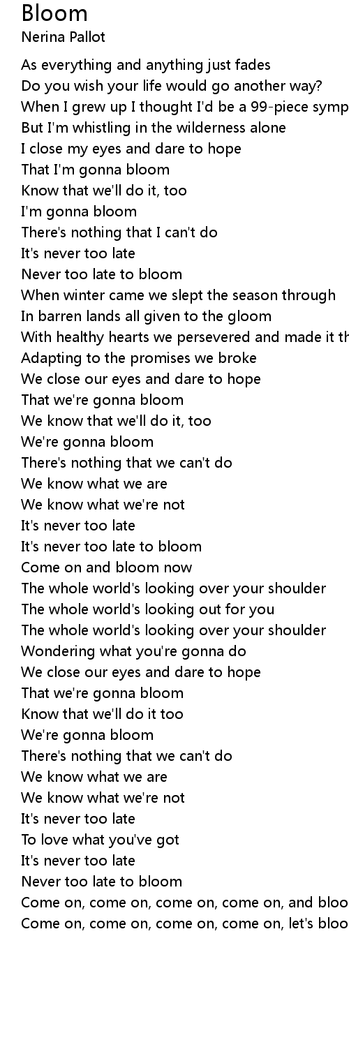 Come on and bloom now |