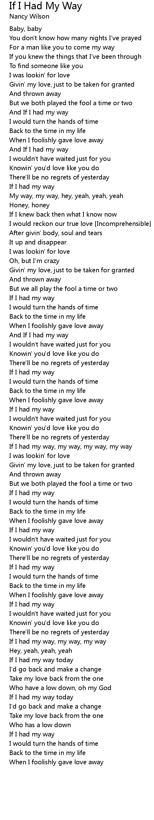If I Had My Way Lyrics