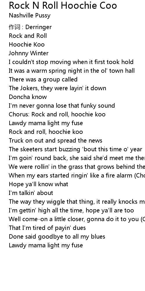 | Chorus: Rock and roll, hoochie koo | |