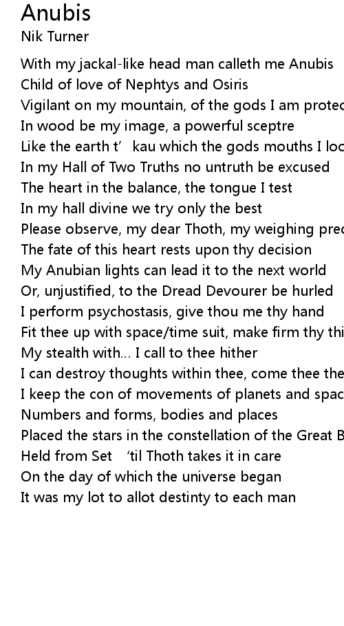 | With my jackal-like head man calleth me Anubis | |