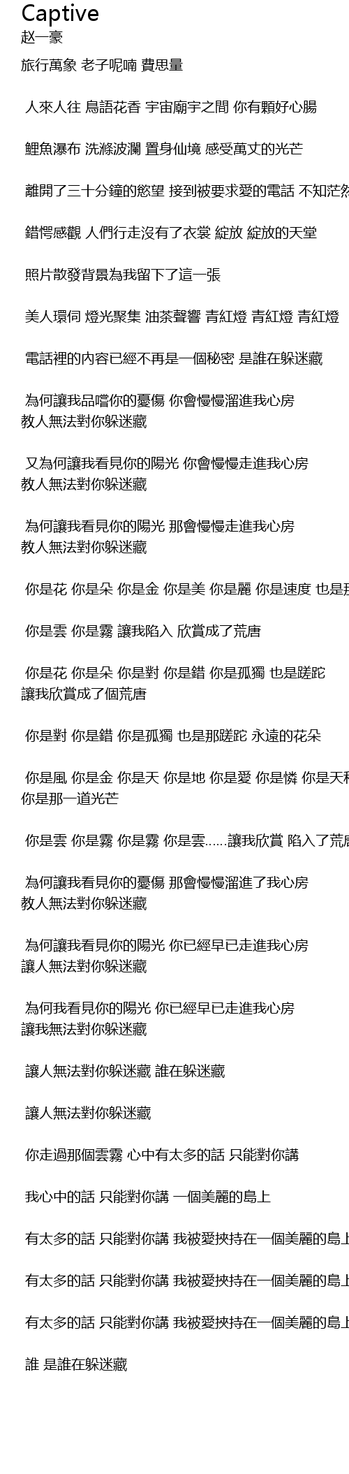| 有太多的話 只能對你講 我被愛挾持在一個美麗的島上 | |