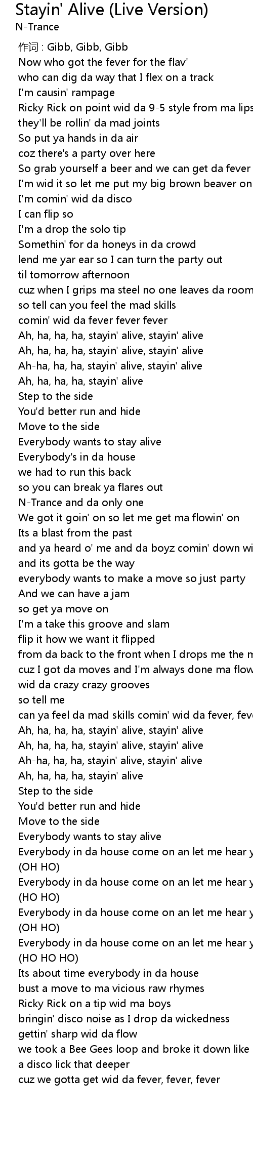 | [00:58.86] | Ah, ha, ha, ha, stayin' alive, stayin' alive |