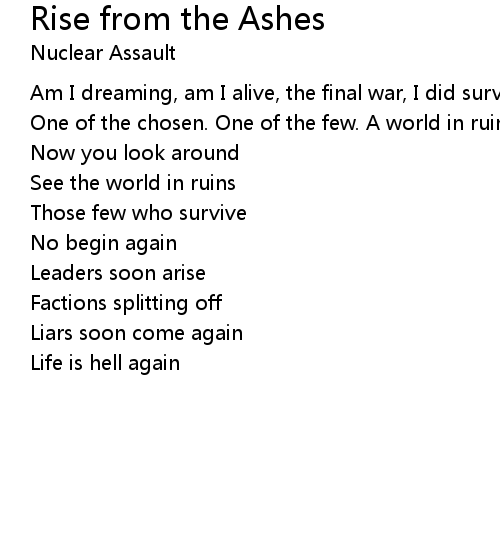 | Am I dreaming, am I alive, the final war, I did survive | |