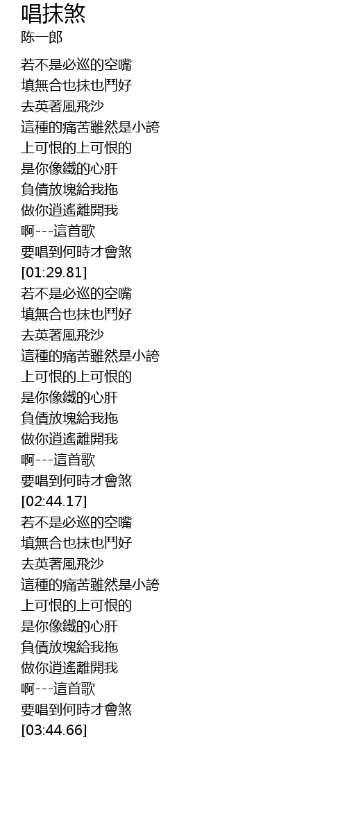| [02:51.81] | 填無合也抹也鬥好 |