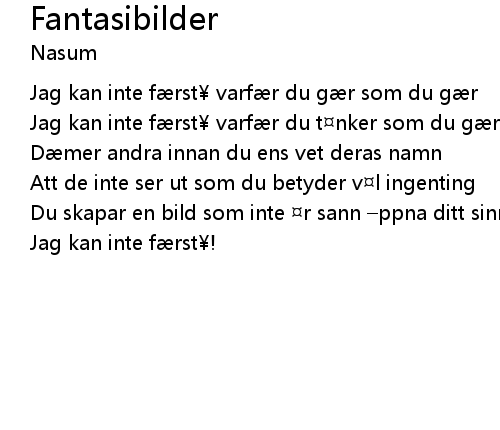 | Jag kan inte færst¥ varfær du t¤nker som du gær | |