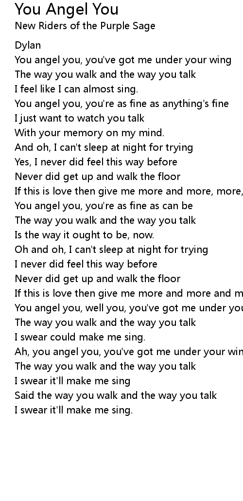 You angel you, well you, you've got me under your wing |