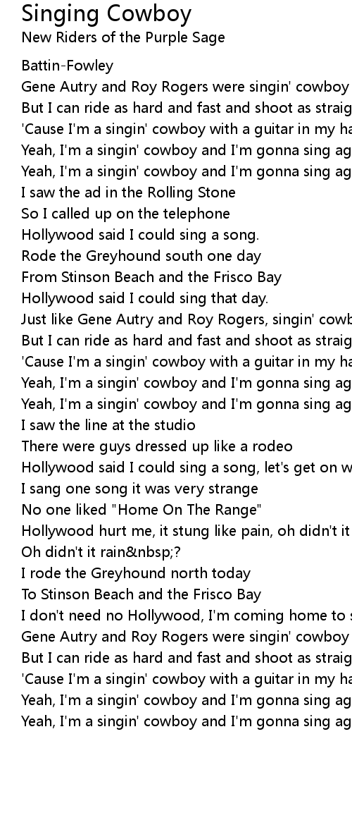 Singing Cowboy Lyrics